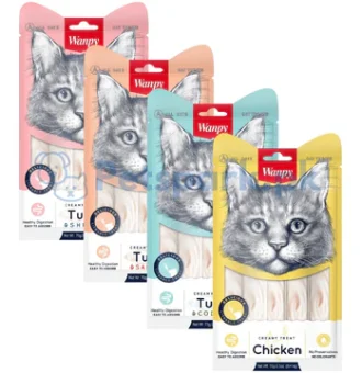 Wanpy Creamy Treats for Cats come in a variety of delectable flavors like tuna, chicken, salmon, and shrimp, each crafted to